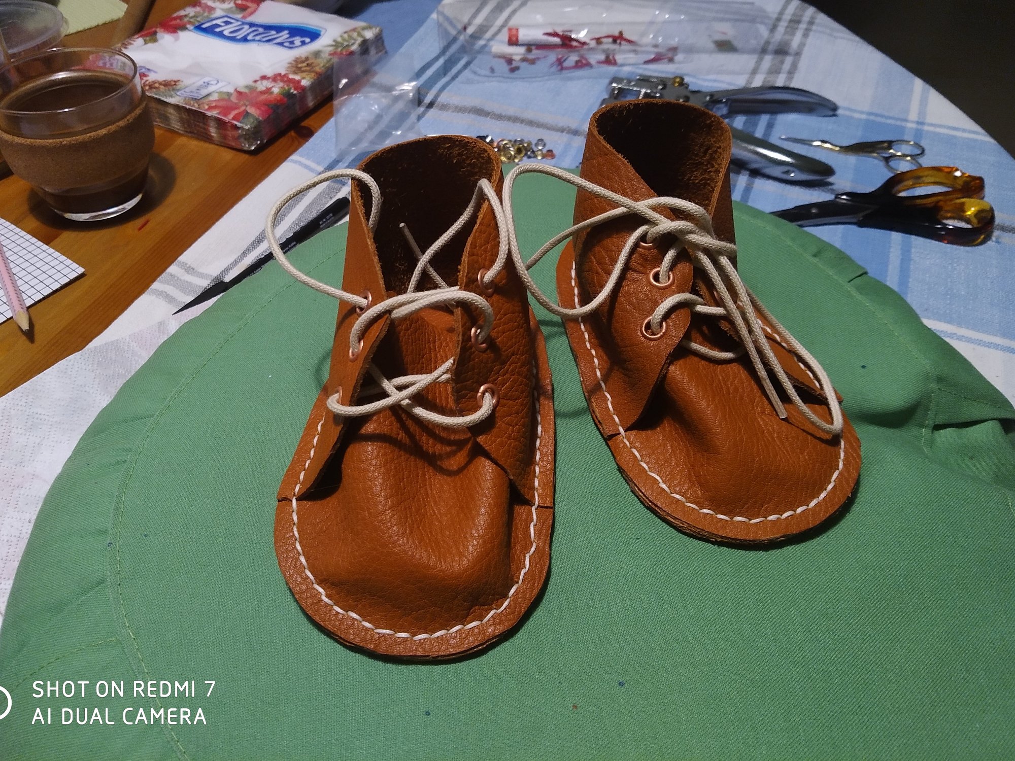 Zasílám foto, jen jsem šila z opravdu měkké kůže, takže boty nedrží tvar a nevím jak dlouho kůže vydrží, ale na noze jsou jako bačkory :).