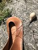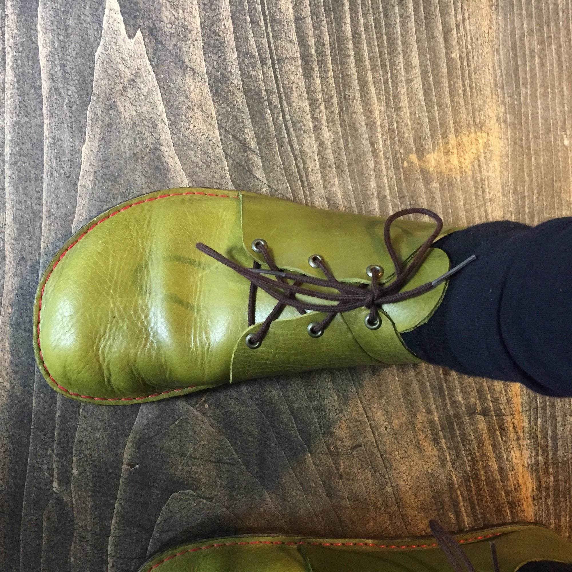 První boty jsou samozřejmě absolutně nedokonalé, šila jsem je jako zkušební, z měkké kůže (takže nedrží tvar), ale i tak jsou pohodlné a mám z nich radost. A už se těším na další, kde se doufám poučím z chyb a vyladím tvar i další nedokonalosti.
